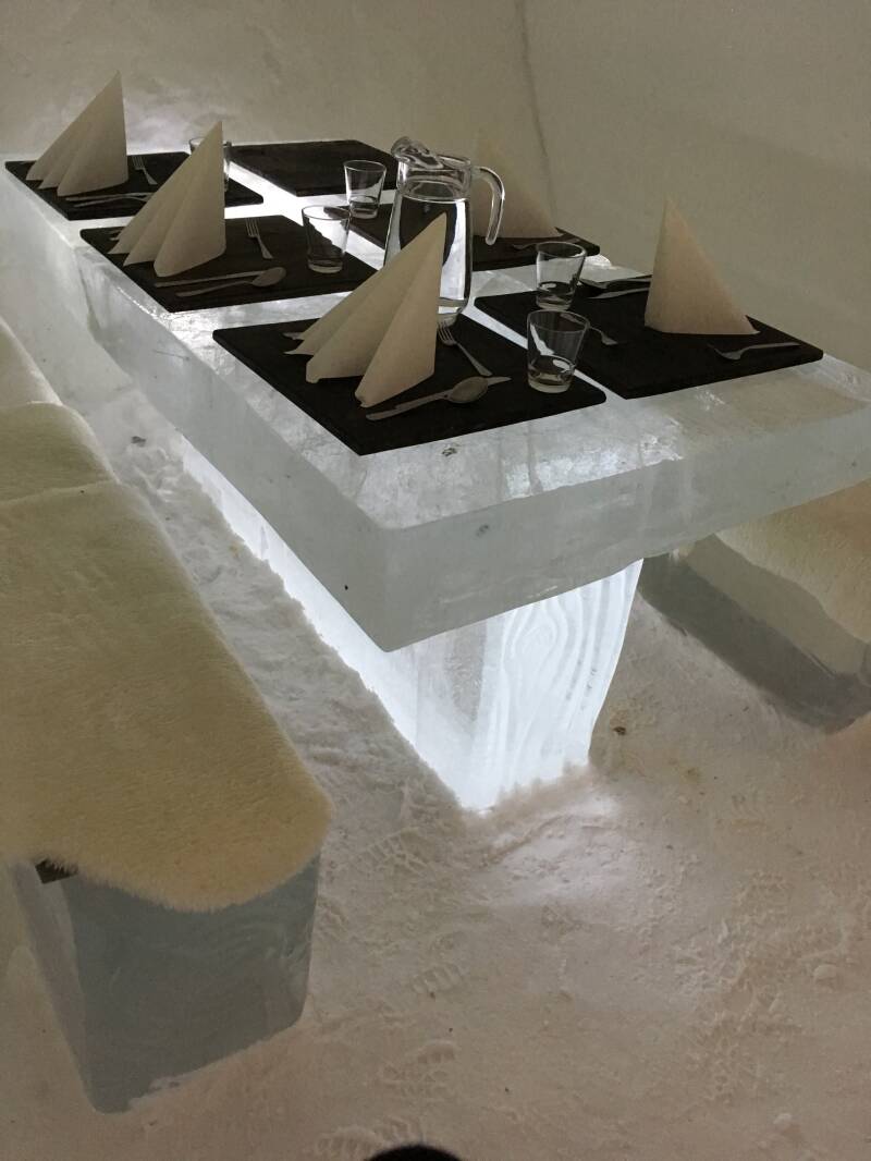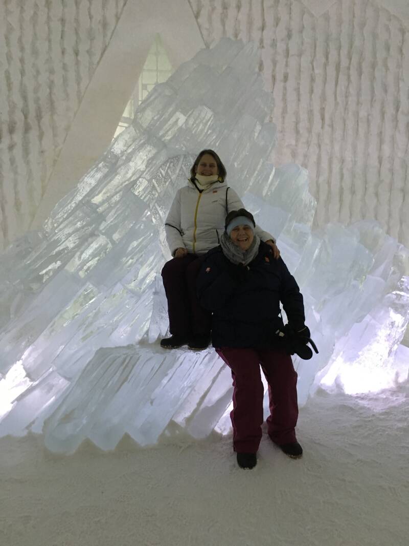 Om 11 uur werden we opgehaald door een busje naar het ijshotel. Half uurtje rijden en we waren er, eerste toeristische ding gevonden check. Erg druk hier en beetje duwen bij de receptie. Eenmaal naar binnen viel de drukte mee, alles was prachtig en leuke foto’s gemaakt. Beetje opgetrokken met 4 andere Nederlanders op deze reis, erg gelachen. Ze waren een briefje van 1 bed vergeten dat je er niet op mocht liggen en dus de stoute schoenen aan getrokken en toch op bed gaan liggen. Na het bezoek mogen we lunchen in het ijsrestaurant. Heerlijk eten wat wel snel gegeten moest worden want -5 laat alles toch wel snel afkoelen. Hierna werden we weer terug gebracht naar het hotel. We waren vroeg terug en besloten te gaan wandelen, na een stuk wandelen sloot een groep van 4 aan. Nederlanders welke ook in het hotel zitten, leuke mensen. Sneeuw selfie, sneeuw engel werd niet voor terug gedeinsd en zo gelachen met zijn allen.