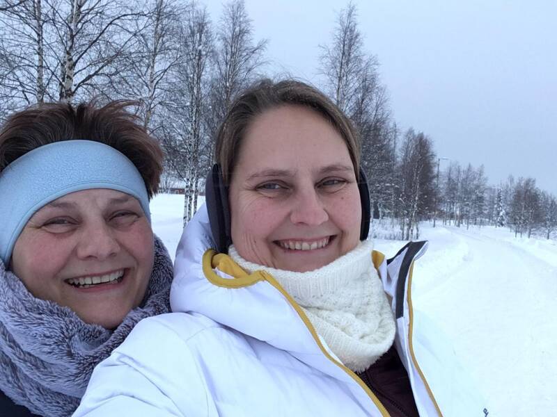 Aan de wandel, naar de supermarkt. 2 km lopen, een flinke huppel maar in de sneeuw leuk om te doen. Veel foto’s en veel gelachen voordat wij benden waren. De supermarkt, stelt weinig voor maar ie kan alles vinden wat je zoekt. Even opwarmen in het café met een thee en een Finse specialiteit een rendier hotdog. Smaakte erg goed en wel trek gekregen zo. Na een uurtje, lekker terug aan de wandel. Zelfde weg terug genomen, en net zoveel lol. Onderweg nog een poolhaas gezien, veel dons, witte zwarte puntpoortjes. Eenmaal in hotel, spelletje erbij gepakt en lekker warme chocomel gedronken. Om 18:00 onze thermokleren ophalen, dit was even passen en meten maar uiteindelijk beide de juiste pakken en schoenen gevonden. Hierna eten, lopend buffet en alles vers klaargemaakt. Goed te eten allemaal, en koekje let koffie als toet.